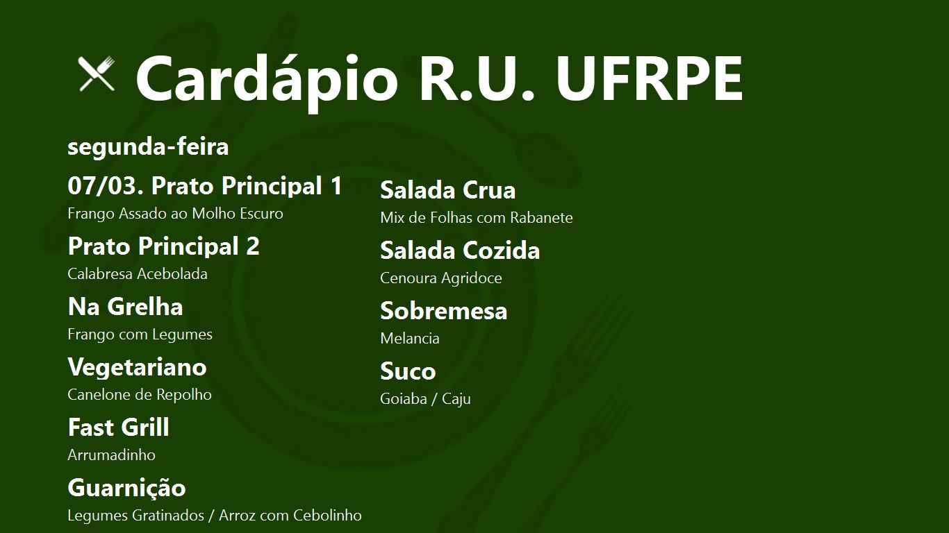 Universidade Federal Do Ceara Campus De Crateus Cardapio Ru 21 A 25 De Agosto 2017
