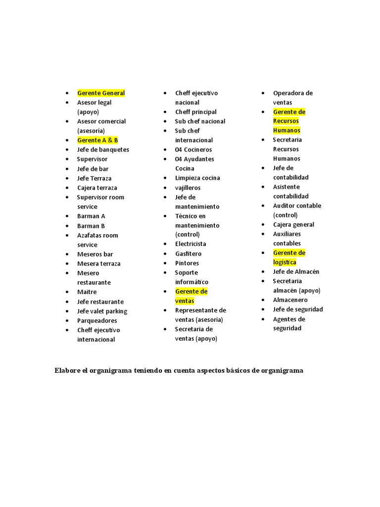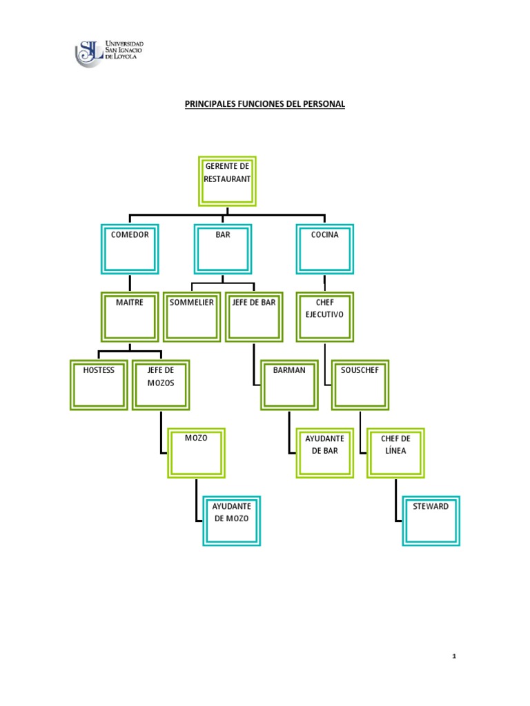 Organigrama Puesto Y Funciones Del Restaurante De Un Hotel By Diana P Cerqueda