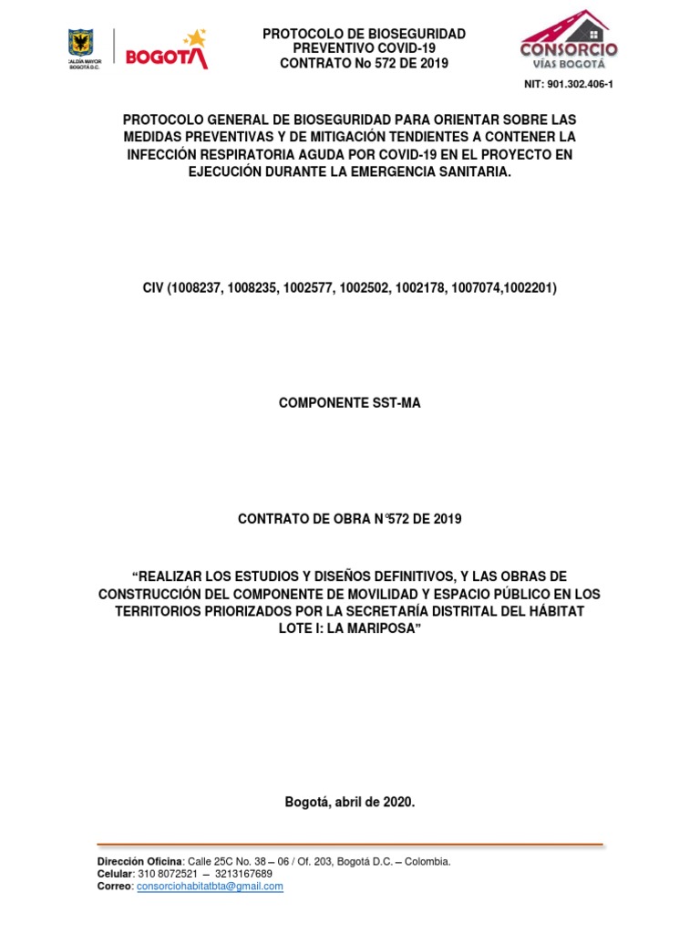 Protocolo Covid 19 Consorcio Vias Bogota 3 Pdf Resfriado Comun Lavado De Manos