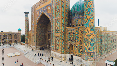 Woman In Architecture Of Famous Registan Of Samarkand Uzbekistan Central Asia Stock Photo Alamy